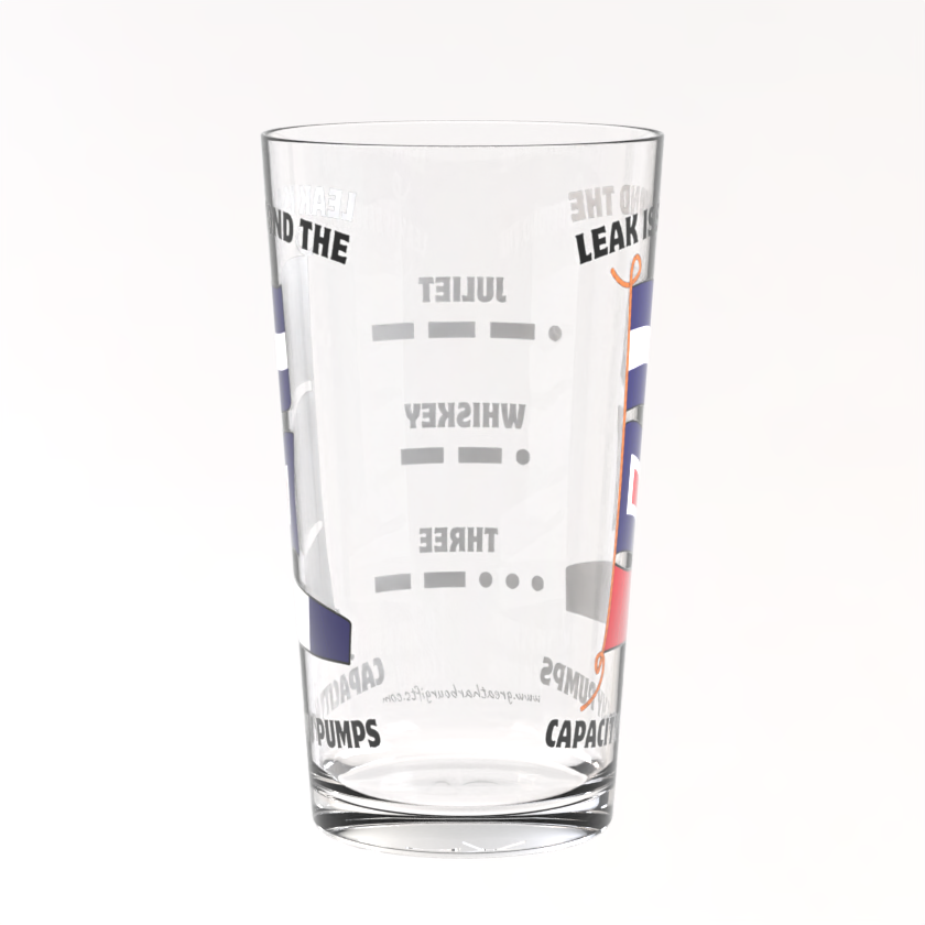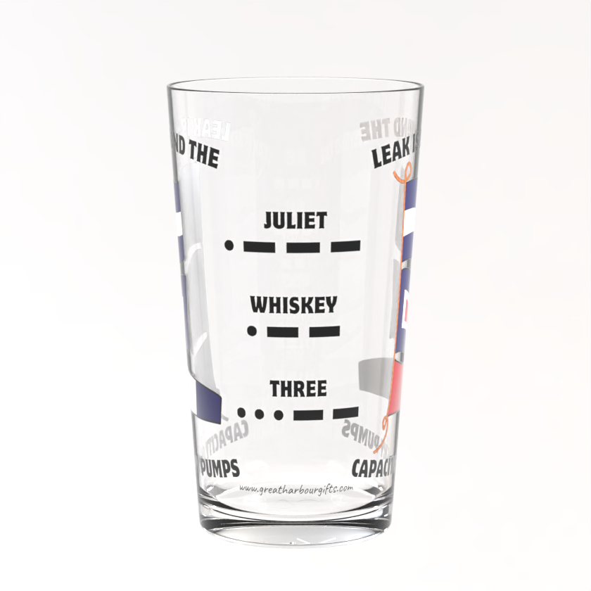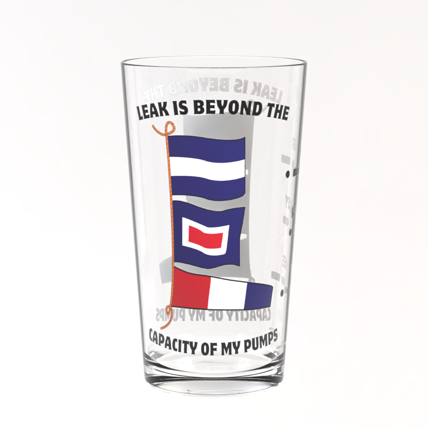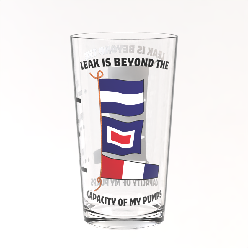 International code of signals (Juliet, Whiskey, Three ) Leak is beyond the capacity of my pumps. The perfect pint glass when making your way back from the bar!