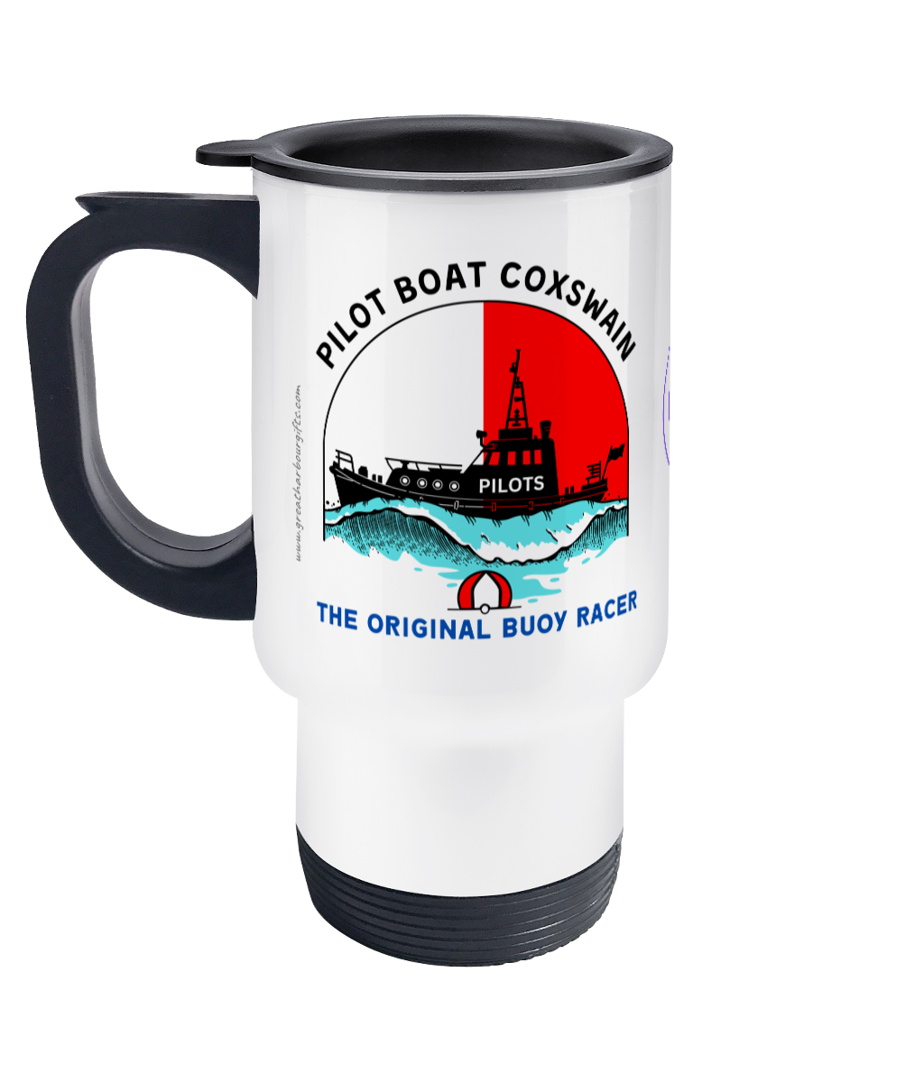 Stainless steel double Insulated travel mugs, 14oz / 415ml capacity, rubber lined lid with drinking tip. Perfect for coffee or tea hot. Bring on the bridge, engine control room or deck.