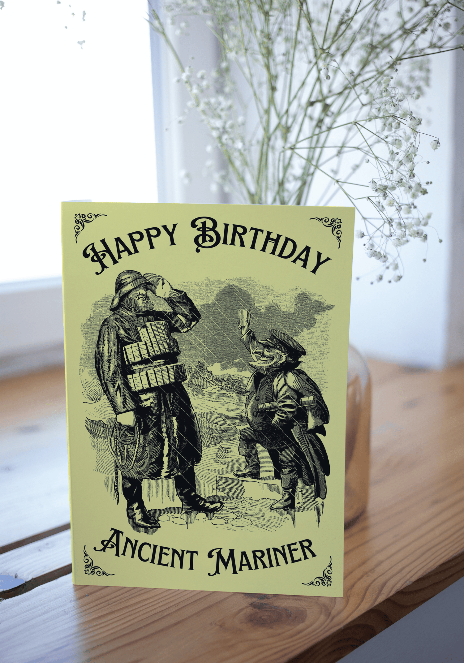 Large A5 size, giclee printed nautical themed greetings cards for all occasions. Vintage, quirky and fun maritime designs created by a real seafarer in the UK. Using high resolution designs on vegan friendly and sustainably sourced Fedrigoni card stock.
